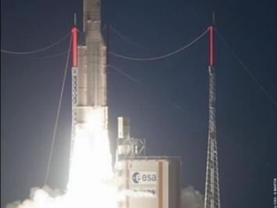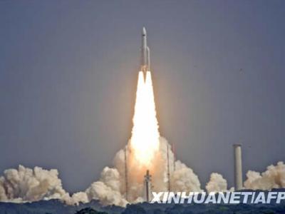 2009年5月14日,在法属圭亚那库鲁航天中心,欧洲阿丽亚娜5-ECA型火箭发射升...