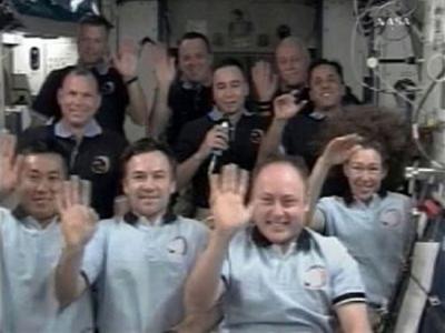 发现号航天飞机与国际空间站的宇航员在分别前合影留念 美联社消息,“发现”号航...