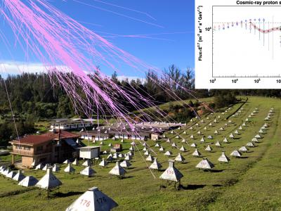 印度Ooty的GRAPES-3实验场景,模拟宇宙射线簇射。图中显示了通过GRAPES-3进行的宇宙...