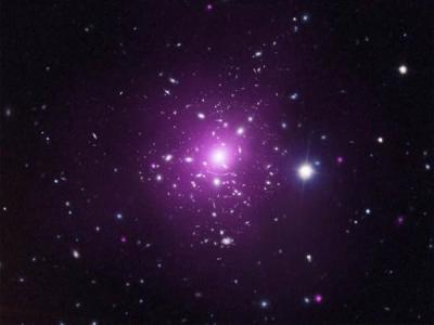这是阿贝尔383(Abell 383)星系团,科学家们曾经借助这一星系团进行暗物质分布图...