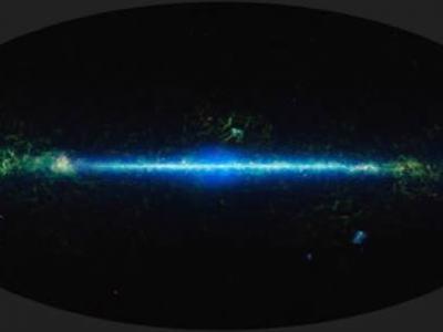根据美国宇航局广角红外巡天探测器(WISE)获取的数据制作而成的全天红外波段影像图...