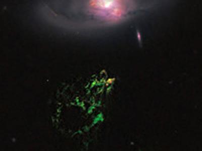 绿色的反射光。哈勃太空望远镜拍摄的汉妮天体(图片下方)和IC 2497(图片上方)...
