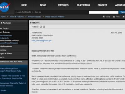 NASA将公布“震惊全人类消息” “钱德拉”X射线天文台在太空发现异常物体 美国宇...