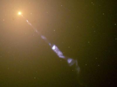通过巨椭圆星系M87的可见光可观测到5000光年长的喷射流,这不是真正的耀变体,因...