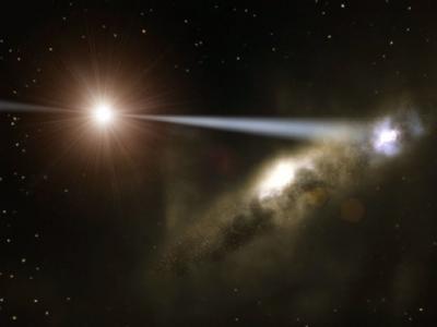类星体HE0450似乎正在从附近的星系攫取气体,并喷出物质从而形成新的恒星。 到底...