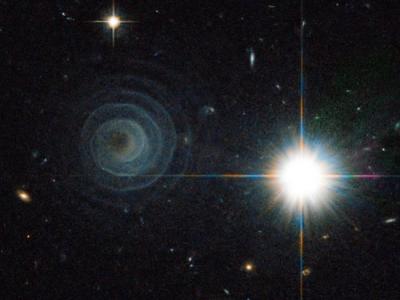 “死亡螺旋” “死亡螺旋”(图片提供:NASA/ESA) 天文学家认为,由于双...