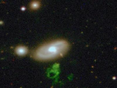 在螺旋星云上有一个奇怪的蓝绿色亮点,在图片下方还有一片绿色光晕 荷兰科学家发...