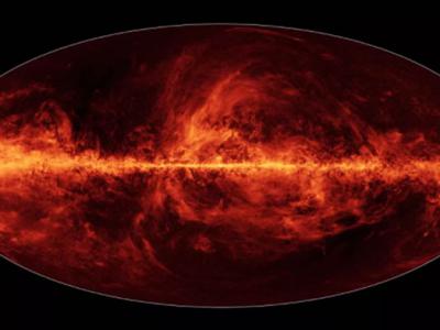 图中是欧洲航天局普朗克望远镜拍摄的巡天图像,炽热颜色区域代表了星系内及星系外的...