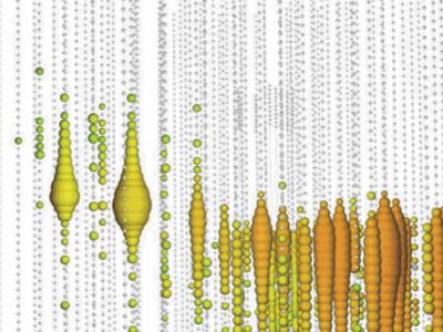 这张插图显示的是IceCube中微子观测站的最新发现。每个空心圆圈表示的是未受撞击...