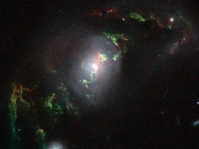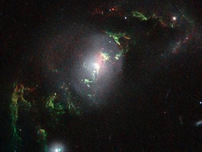 绿色长丝的结构形成于宿主星系合并后,绵延仅数万光年,当星系合并后这些来自星系...