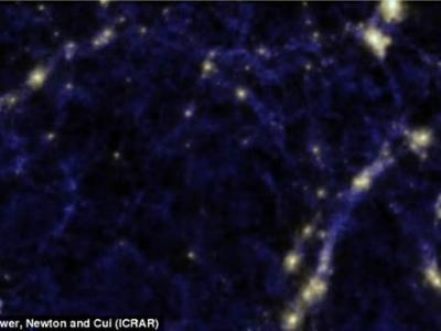 宇宙空旷区域里发现精细的星系带状物 电脑模拟显示宇宙里的物质是以宇宙网的细...