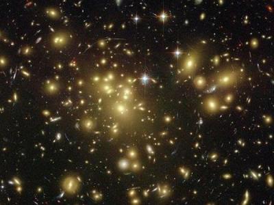 哈勃太空望远镜探索Abell1689星系团中心物质群,引力透镜暗示这里存在大量的暗物...