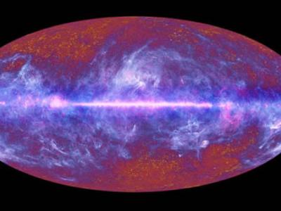 这张照片是由普朗克望远镜获取的微波波段宇宙背景辐射分布图像,宇宙中最古老的光...