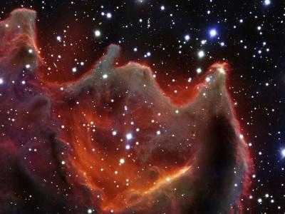 “上帝之手”又称CG4,是一团彗形球状体。在这张壮丽的图片上,这团灿烂的星云如...