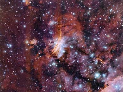 智利拉西拉天文台陆基望远镜拍摄到“对虾星云”的部分结构,存在着大量新生恒星 ...