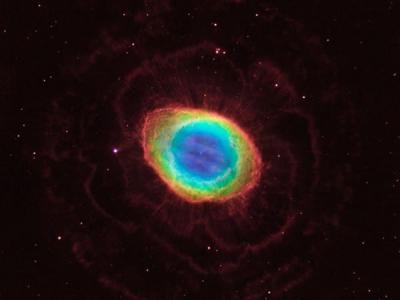 哈勃太空望远镜可见光图像显示了M57星云的细节结构,同时也汇集了亚利桑那州大型...