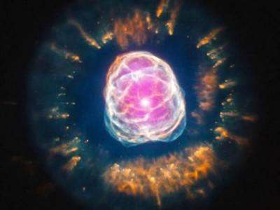 美国宇航局公布的一幅合成图像,展示正在剥离外层的恒星NGC 2392。NGC 2392也被称...