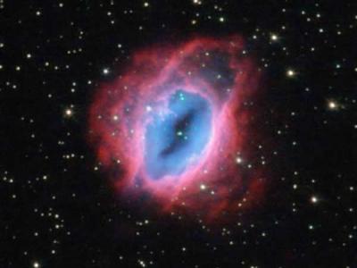 这幅漂亮的“行星状星云”是一颗类似太阳的恒星,在生命演化的末期通过抛洒物质形...