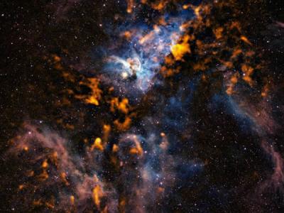 船底星云全景图,这里是超大质量恒星诞生之地,是欧洲南方天文台甚大望远镜的红外...