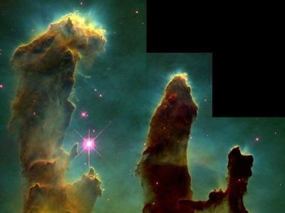 1995年哈勃太空望远镜拍摄的鹰状星云“创世之柱”成为近代最为著名的天文图像,图...