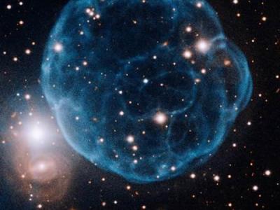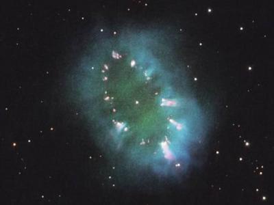 近期,哈勃太空望远镜最新观测到项链星云,该星云散发的蓝色部分是氢气,绿色部分...