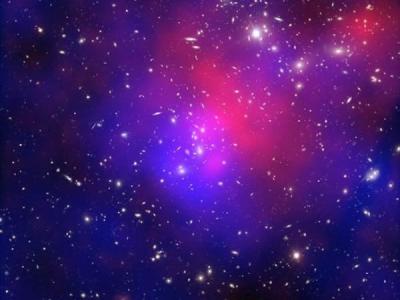 这是阿贝尔-2744星系群的合成图像,由哈勃空间望远镜,钱德拉X射线望远镜,以及欧...
