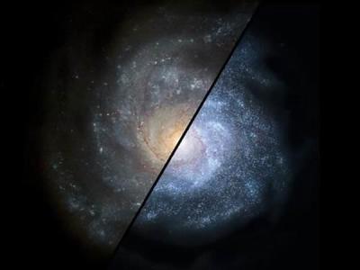一个普通螺旋星系的“解剖图”显示,左侧部分是遥远宇宙的残留体,而右侧部分则充...