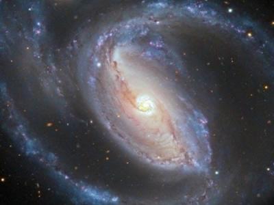 天炉座NGC 1097棒状星系正与旁边小星系进行引力拉锯 欧洲天文台发布了一张两个星...