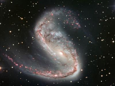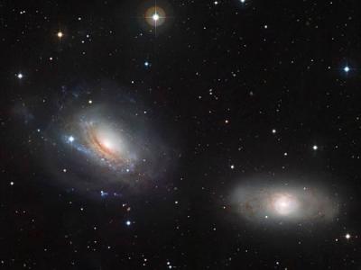 这张图像中,左侧是NGC 3169,右侧是NGC 3166,它们靠得太近了,相互之间已经开始...