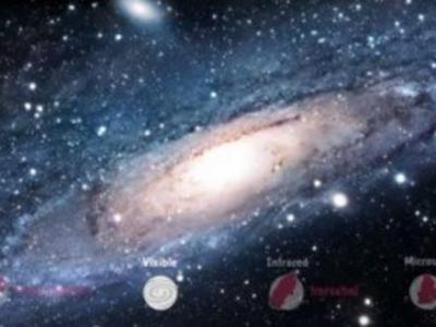 可见光波段下的仙女座星系 多波段叠加下的仙女座星系 欧洲空间局多个空间望远...