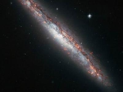 这是哈勃望远镜拍摄的侧向旋涡星系NGC 5775,它存在一个气体晕结构。天文学家们认...