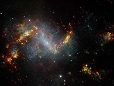 科学家拍摄到的NGC 1313星系通过产生“宇宙超级泡泡”,进而形成新星体的照片 天...