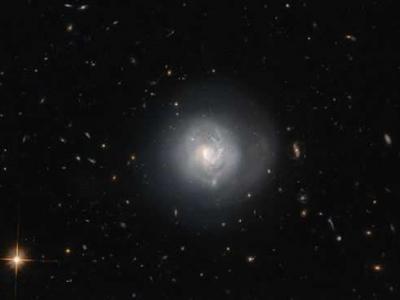 这个星系被称为Mrk 820,是一个透镜状星系。Mrk 820周围有许多其他类型的星系,从椭...