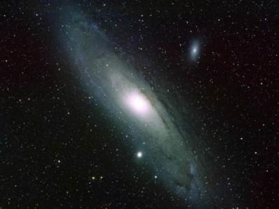 仙女座星系的望远镜观测图像,照片中可以看到它的两个伴星系:M32以及M110 仙...
