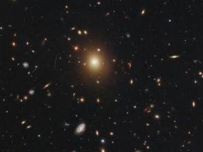 由哈勃空间望远镜拍摄的阿贝尔2261星系团照片,其中一个最大最亮的星系中便存在巨...