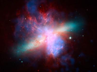 这是M82,一个星爆星系,所谓星爆星系就是指正有大量恒星正在形成的星系。在这张...