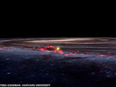这张来自WorldWide Telescope软件的图片将银河系和太阳的研究数据与艺术想象图叠加...