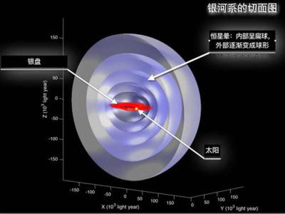 银河系的结构示意图左侧是恒星晕的空间分布密度切面...