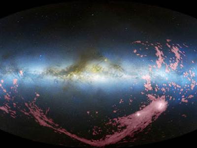 这张全天、结合无线电和可见光的图片显示了麦哲伦流(粉色部分)。 这张无线电...