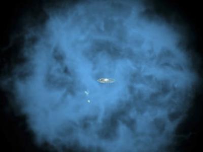 艺术家描绘的巨大气体环(蓝色部分)环绕在银河系周围 目前研究人员认为一个巨大...