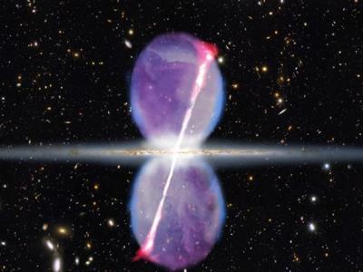 从银河系中心同时向相反的方向喷射出来的两束巨大的喷流,只有超大质量黑洞吞噬掉...