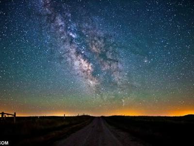 真实色彩:在美国怀俄明州奈厄布拉勒县上空清晰可见银河系的光带,在地球上无法真...