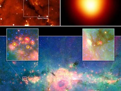 研究人员在银河系中心发现3颗婴儿恒星(下);研究人员发现了一个有可能转化为大...