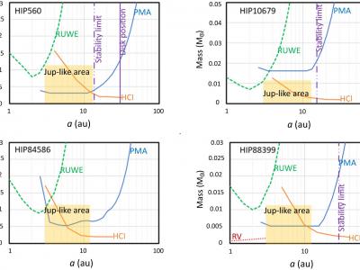 显示伴星质量(M⊙)的图表,这些伴星质量可能是观测到的自行异常(PMA)的原因,是au(...