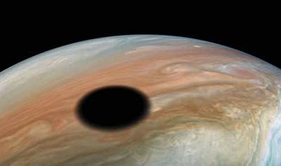 朱诺号拍摄到木卫一在木星漩涡风暴上投下