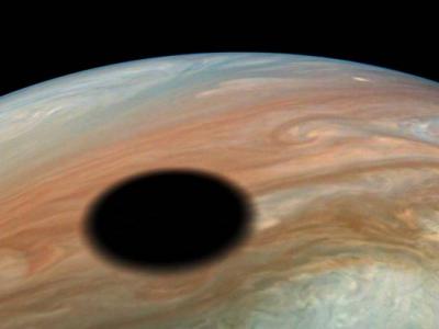 NASA朱诺号探测器拍摄到木卫一在木星上投下阴影的景象(神秘的地球uux.cn报道)据c...