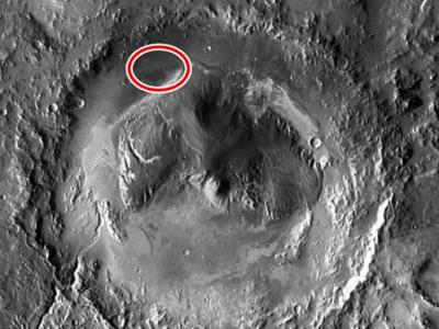 好奇号于盖尔撞击坑附近探测到甲烷(红圈示)。火星快车亦发现...