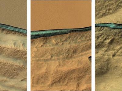 科学家发现许多位于火星中纬度地区的侵蚀斜坡,在地表下方一到...