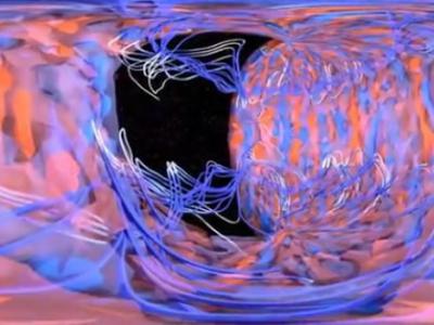 这些图形描绘了钱德拉和其他望远镜可能发现的两颗中子星在一个被巨大气体流掩埋的微...
