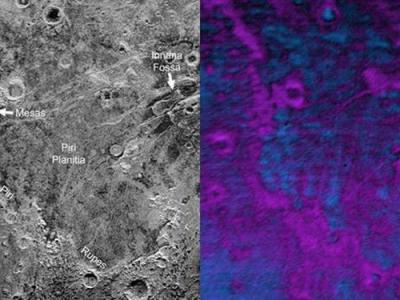 图中还可看出皮尔平原富含水冰(图中以伪彩色蓝色表示),这表明皮尔平原的表面由...